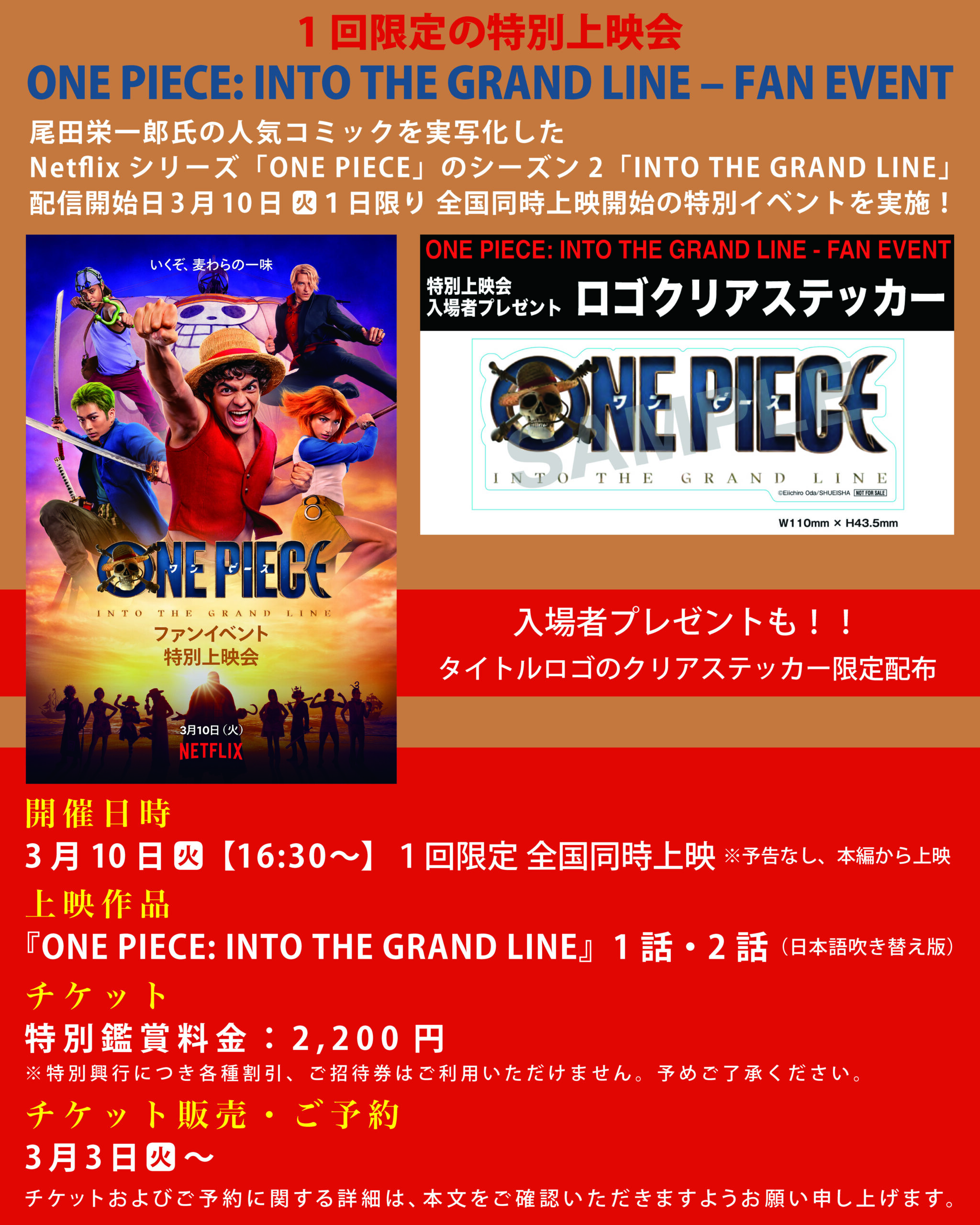 特別上映会”ONE PIECE: INTO THE GRAND LINE – FAN EVENT” 3/10(火) 1回限定上映